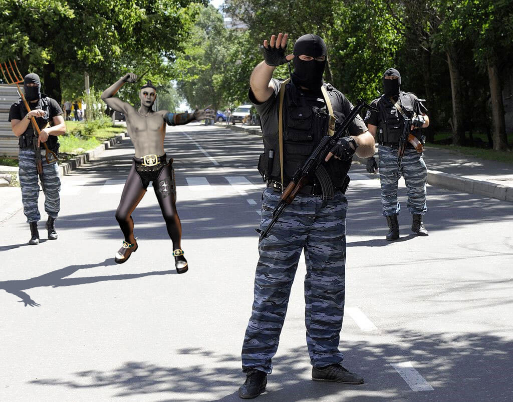 André : Euh… eh bien je… hem ! Bien… Hé ! Hé ! Alors, maintenant que nous avons toutes les armes que l’on veut, Il faut a présent que nous sortions dans la rue pour…